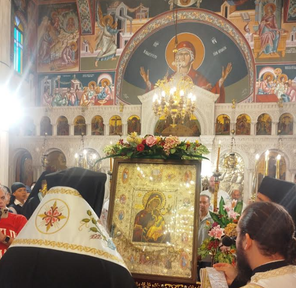 «Από το Ιερό Ναό Ευαγγελίστριας Ναυπλίου αναφέρεται: «Με κατάνυξη και συγκίνηση πραγματοποιήθηκε στον Ιερό Ναό «ΕΥΑΓΓΕΛΙΣΤΡΙΑΣ» Ναυπλίου, χθες 29 Σεπτεμβρίου 2025, η επίσημη υποδοχή της θαυματουργού Ιεράς Εικόνας της Παναγίας «Φοβερά Προστασία» από το Άγιον Όρος.