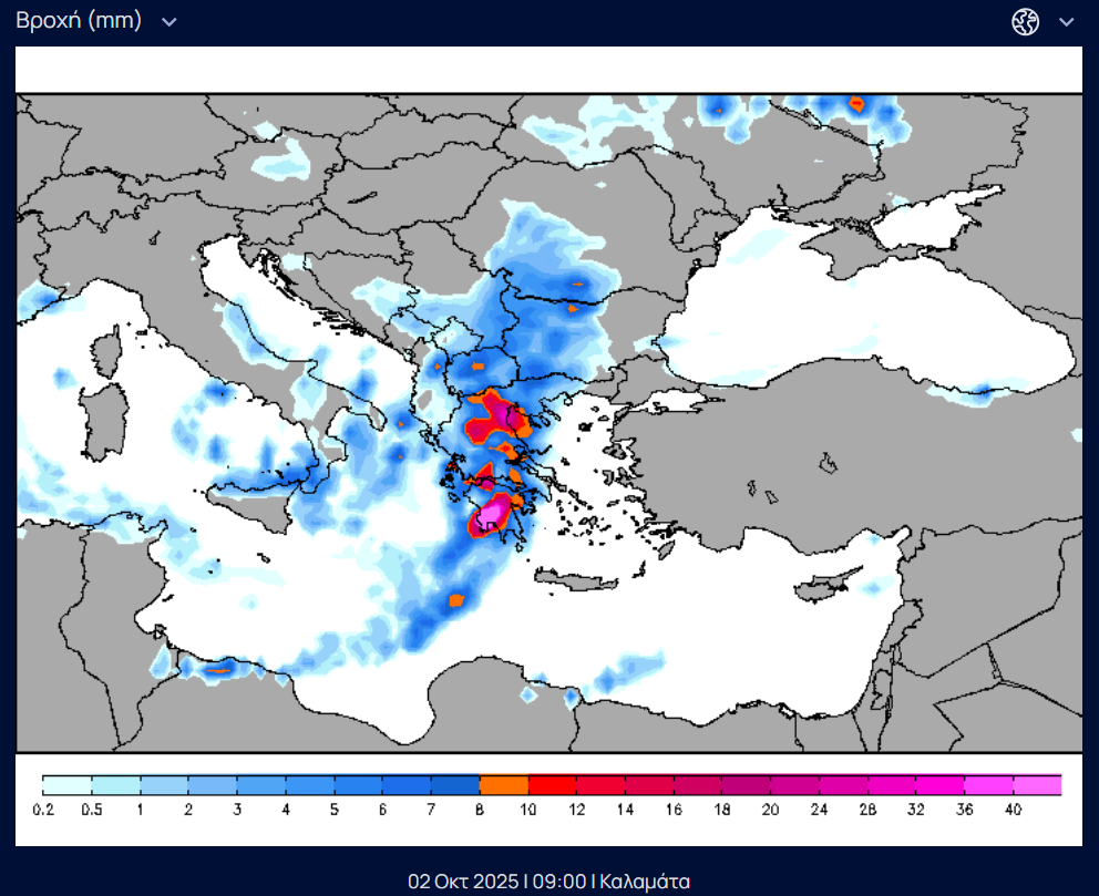Δείτε την πορεία της κακοκαιρίας σύμφωνα με το freemeteo.gr: