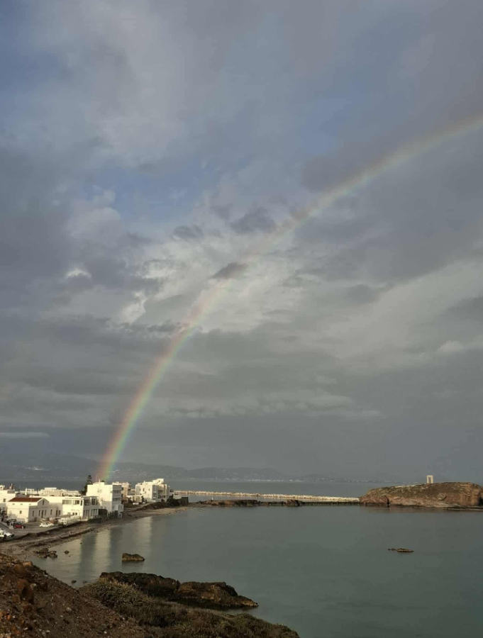 Μετά από περισσότερο από έναν μήνα ανομβρίας, η Νάξος υποδέχτηκε τις πρώτες βροχοπτώσεις και ο ουρανός αντάμειψε το νησί με ένα εντυπωσιακό ουράνιο τόξο!