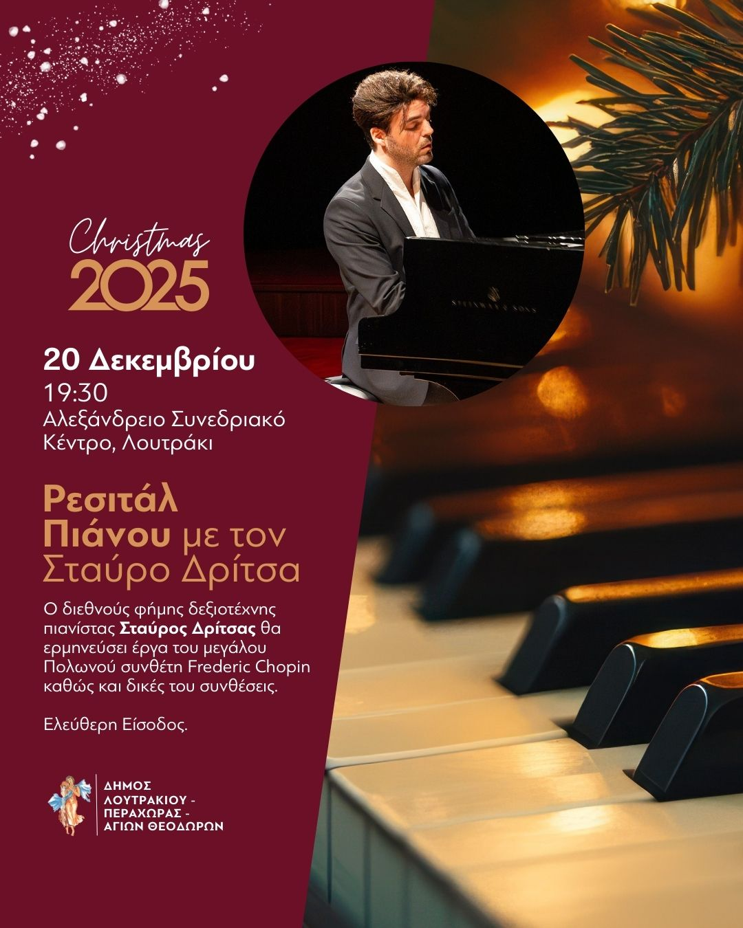 Σάββατο 20 Δεκεμβρίου 2025 | 19:30 στο Αλεξάνδρειο Συνεδριακό Κέντρο στο Λουτράκι.