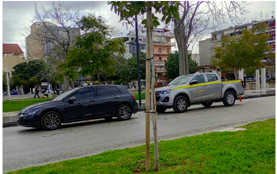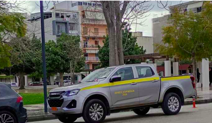 Εδώ βλέπουμε το όχημα (4Χ4) του δήμου Κορινθίων να έχει σταθμεύσει παράνομα!