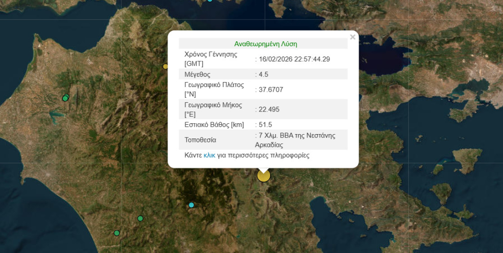 Ισχυρός σεισμός σημειώθηκε στην Αρκαδία, ο οποίος ήταν μεγέθους 4,5 της κλίμακας Ρίχτερ, και έγινε ιδιαίτερα αισθητός και στην Αττική.
