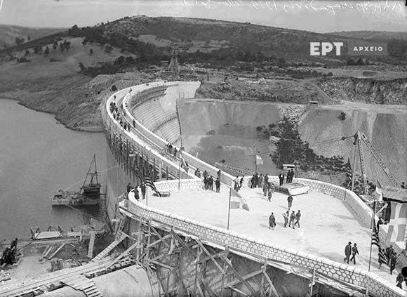 Μια ιστορική φωτογραφία από το φράγμα της λίμνης του Μαραθώνα, την ημέρα των εγκαινίων του, στις 25 Οκτωβρίου 1929.