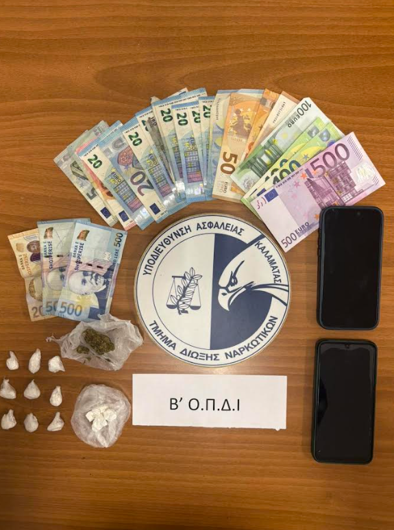 «Συνελήφθησαν, χθες (29.3.2026) το απόγευμα, στην Ε.Ο. Φιλιατρών-Κορυφασίου, από αστυνομικούς του Τμήματος Δίωξης Ναρκωτικών της Υποδιεύθυνσης Δίωξης και Εξιχνίασης Εγκλημάτων Καλαμάτας, σε συνεργασία με τη Β’ Ομάδα Πρόληψης και Διαμεσολάβησης (Ο.Π.ΔΙ) Μεσσηνίας, -2- ημεδαποί, ηλικίας 26 και 24 ετών, αντίστοιχα, γιατί αρχικά σε έλεγχο σε όχημα στο οποίο επέβαιναν, κατελήφθησαν να κατέχουν από κοινού ποσότητες κοκαΐνης, συνολικού βάρους  -9,3- γραμμαρίων, οι οποίες κατασχέθηκαν.