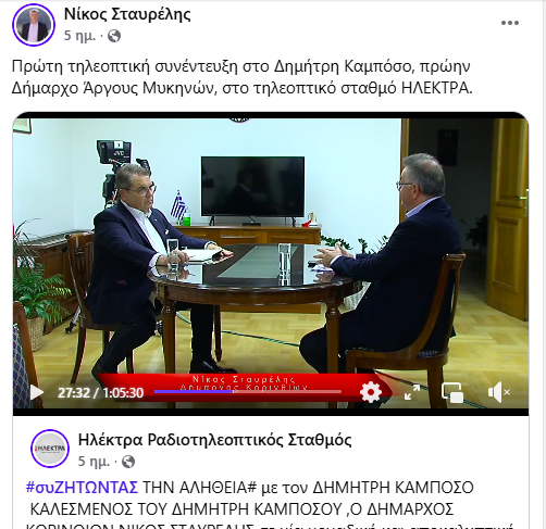 Μία συνέντευξη έδωσε ο νυν δήμαρχος Κορινθίων Ν. Σταυρέλης στον τέως δήμαρχο Άργους Δ. Καμπόσο!